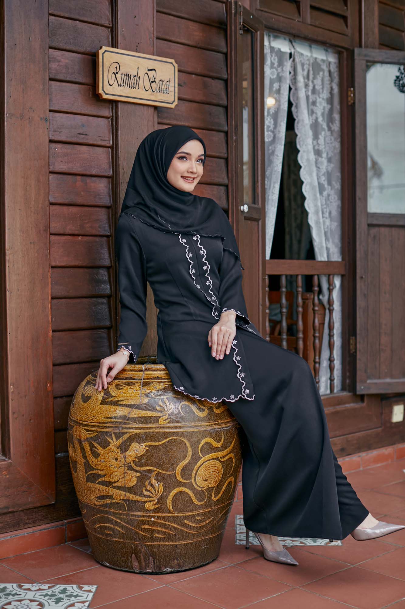 Mahsuri Kebaya Sulam is a traditional modern-day kebaya design with exclusively made from premium material (polyster + viscose and spandex ) and embellished with handmade “sulam biku bunga” embroideries . Kebaya sulam dresses are one of the best example of kebaya influence for lebaran soon