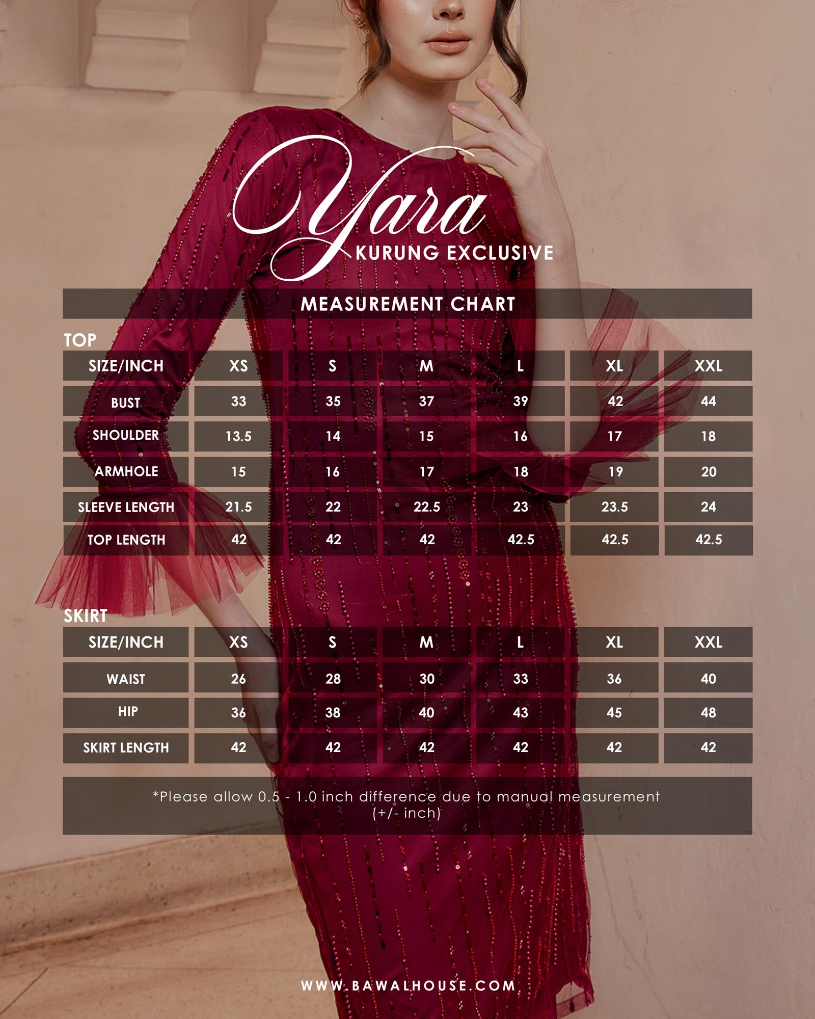 Please check your body size measurement carefully before add to cart because our policy is ”NO REFUNDABLE/NO EXCHANGEABLE”. We do not be responsible for the wrong size chosen.